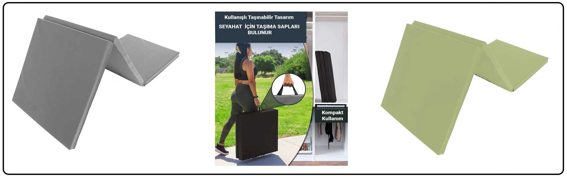 Üç Katlı Katlanabilir Kalın Spor Egzersiz Matı Temel Egzersiz Minderi Pilates Minderi 4CM Kalınlık gri