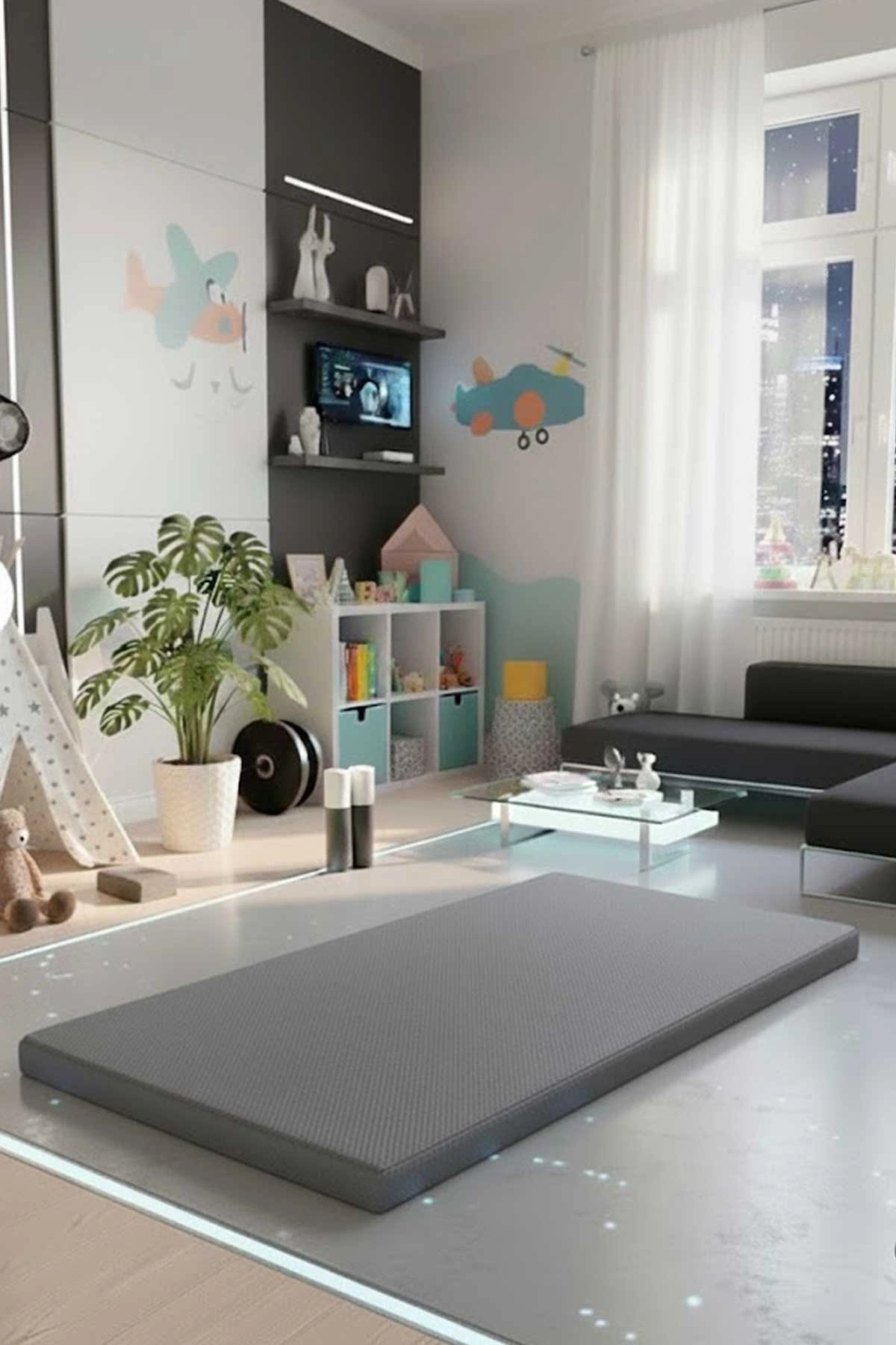 Çocuk Jimnastik Minderi 60x120x5 Cm 600 Denye Sıvı Geçirmez Kumaş Kaydırmmaz Yıkanabilir Gri