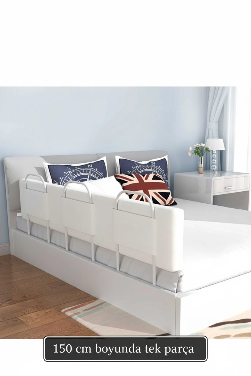PRO Yumuşak Bebek Güvenlik Yatak Bariyeri Yatak Korkuluğu 150 Cm Tek Parça BEYAZ