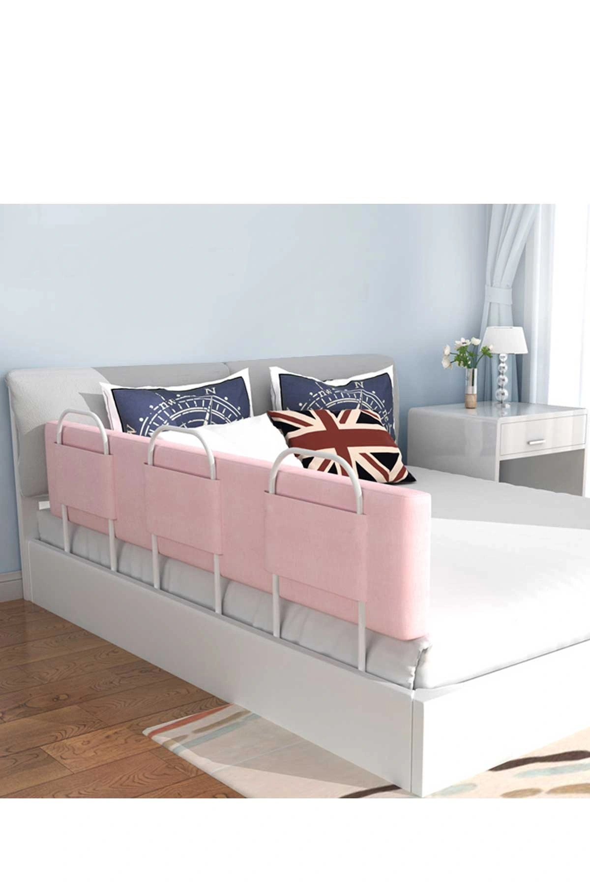 PRO Yumuşak Bebek Güvenlik Yatak Bariyeri Yatak Korkuluğu 150 Cm Tek Parça PEMBE