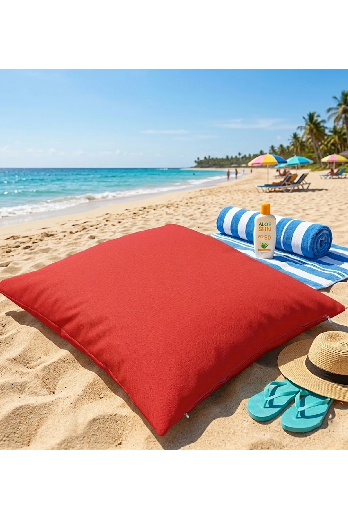 Su Geçirmez Plaj Minderi ve Bahçe Minderi - 600 Denye Fermuarlı, İç Kılıflı Yer Minderi beach minderi-kırmızı