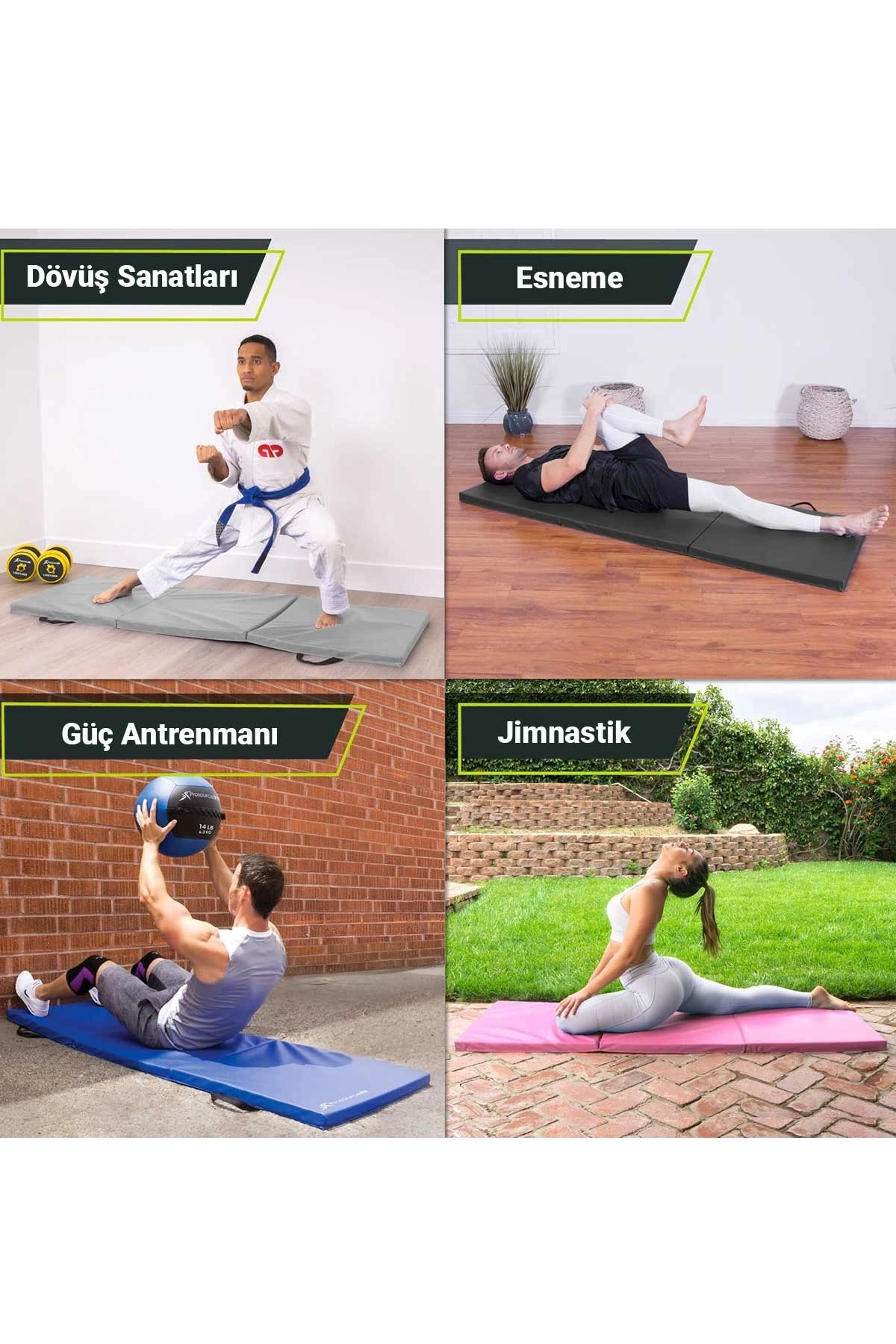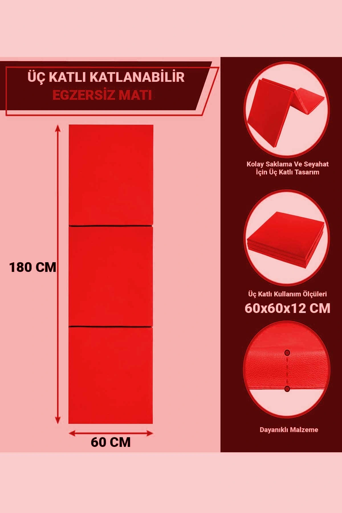 - 180 x 60 cm boyutlarındaki geniş yüzey alanı, temel egzersizleriniz için ideal bir alan sunar ve konforlu bir deneyim sağlar.